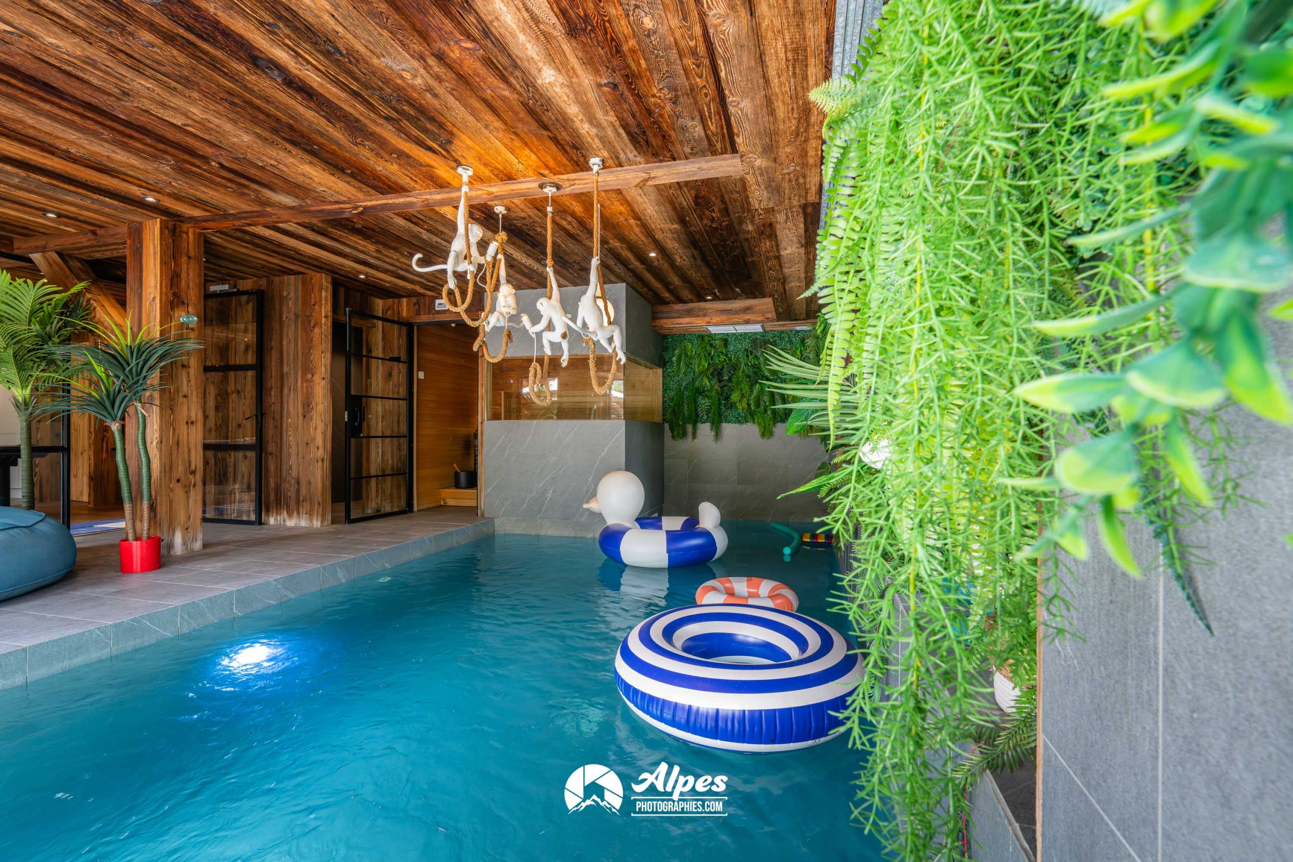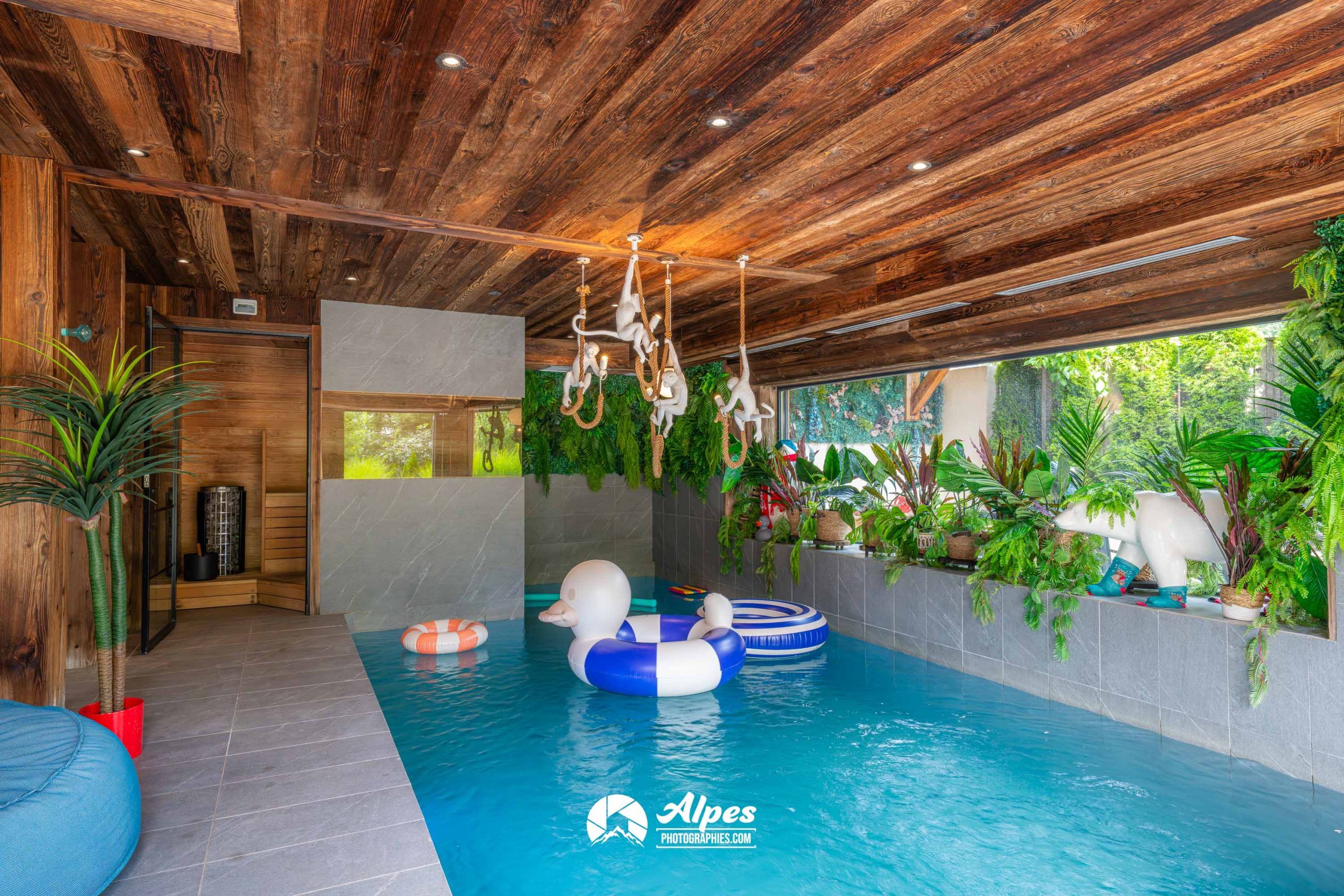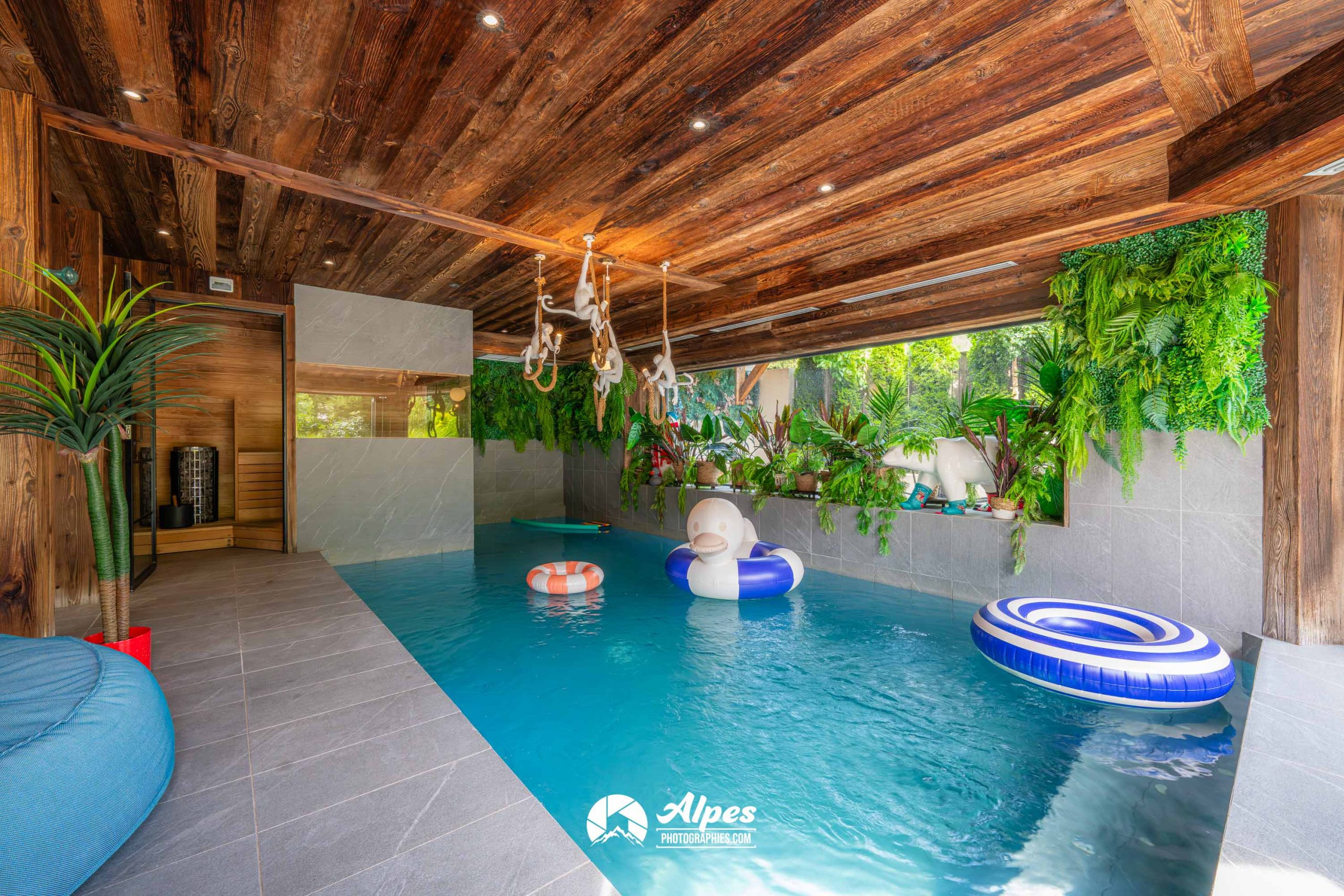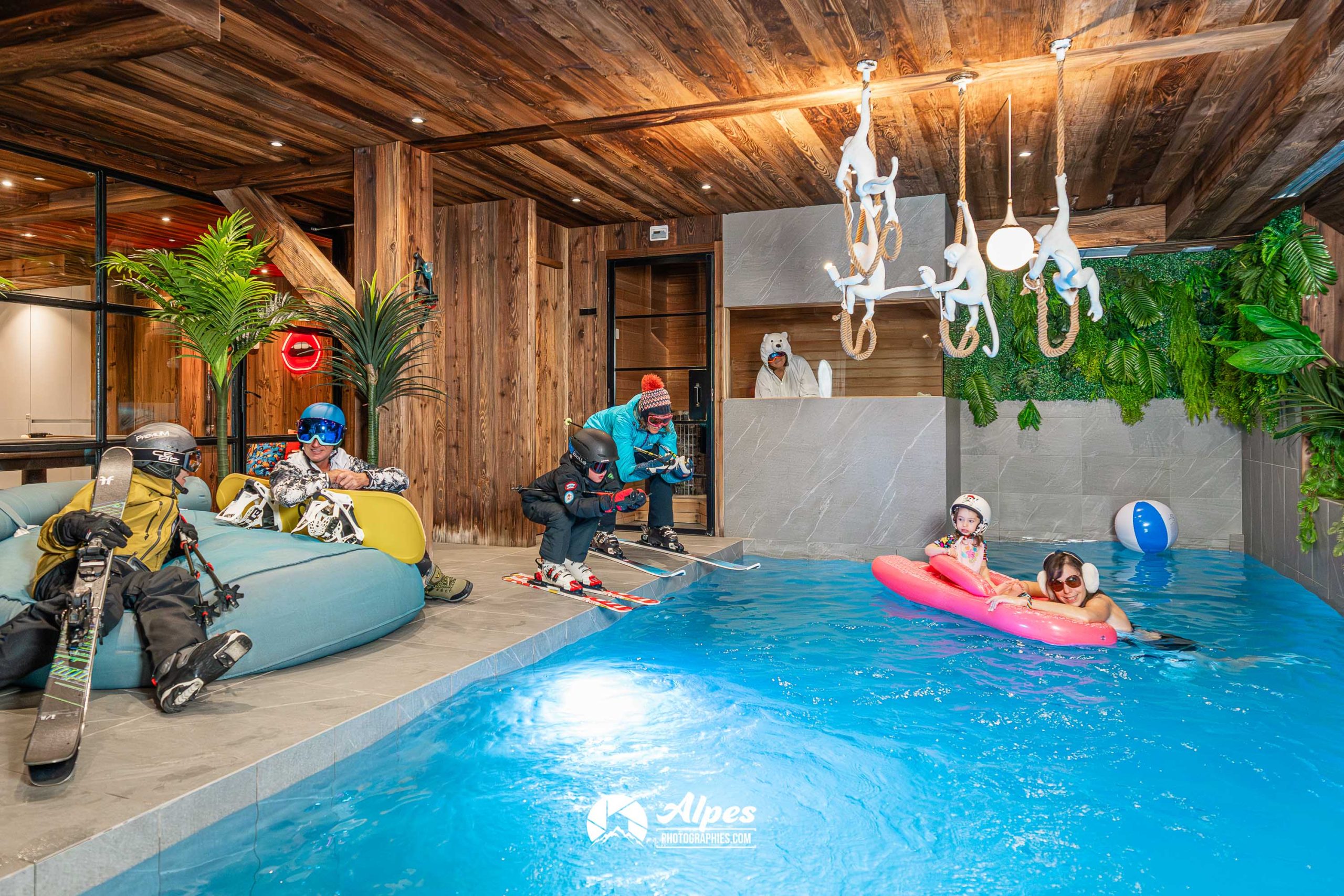 Tout a été pensé pour un séjour à la fois ludique et luxueux : piscine, sauna, espaces de jeux avec baby-foot, arcades et billard, salle de cinéma, et même un mur d’escalade.